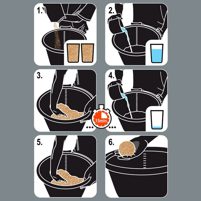 On laisse ensuite l’amorce se reposer pendant 15min, puis on vide le reste d’eau pour arriver à un mouillage qui vous permettra de faire des boules.