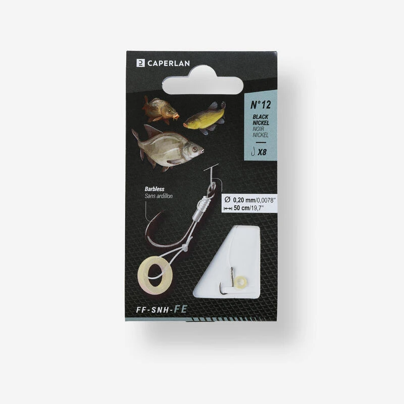 Ce bas de ligne de 50 cm a été conçu pour le pêcheur au feeder.Cet hameçon muni d’une bague élastique permet d’escher, facilement et sans accessoire, des pellets de 6mm à 10mm.