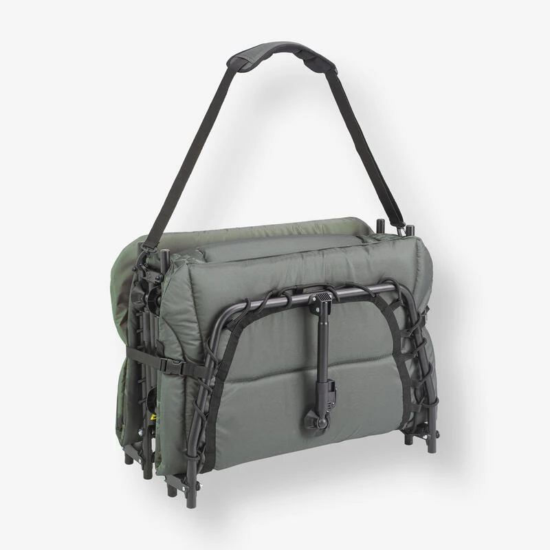 Amener son bedchair sur son spot de pêche n’est pas chose aisée. En effet, les dimensions imposantes da la majorité des bedchairs compliquent la tâche, notamment si nous ne sommes pas équipés d’un chariot ou d’un bateau.