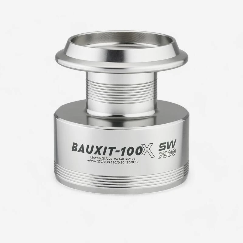 Bobine en aluminium compatible avec le moulinet BAUXIT 100 X SW 7000.Cette bobine en aluminium est compatible avec le moulinet BAUXIT 100 SW 7000 et le BAUXIT 100 X 7000.