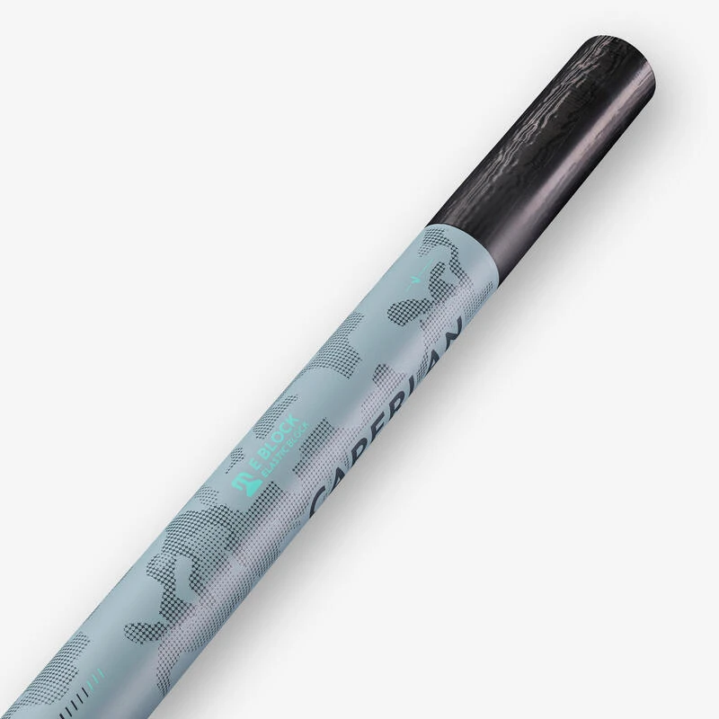 -Pour donner plus de latitudes dans l’utilisation de cette canne nous avons choisi de positionner 2 E BLOCK amovibles sur les éléments n°4 et n°5. L’idée étant d’utiliser la longueur d’élastique adaptée au besoin